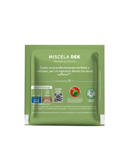 La Miscela DEK di Caffè Borbone dimostra che rinunciare alla caffeina non significa rinunciare al gusto. Il processo di decaffeinizzazione con metodo naturale preserva integralmente gli aromi e le caratteristiche organolettiche del caffè, garantendo una bevanda leggera al palato ma ricca di sapore. Il blend, composto da Arabica e Robusta decaffeinate, offre note di cereali tostati, mandorla dolce e un lieve sentore di vaniglia, con una crema chiara e persistente. Ideale in ogni momento della giornata, anche la sera. Ogni cialda contiene 7,2g di caffè macinato decaffeinato, confezionato in atmosfera protettiva. La confezione da 150 cialde è il formato scorta perfetto per chi ama il caffè senza limiti. Cialda compostabile certificata CIC, incarto riciclabile. Compatibile con tutte le macchine ESE 44mm.