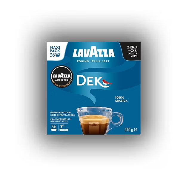 36 Capsule A Modo Mio DEK Lavazza. Decaffeinato delicato e aromatico.
